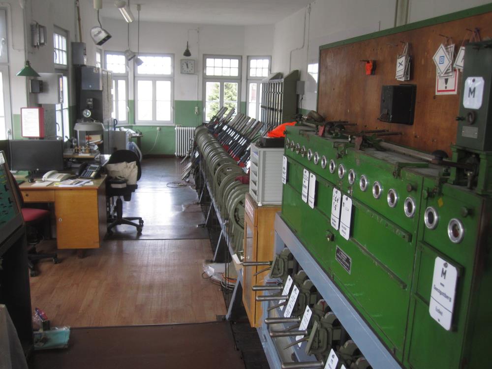 Diese Bilder zeigen das Innenleben des Stellwerks in der oberen Etage. Hier befinden sich diverse Hebel, die früher und teilweise heute noch dem Stellen von Weichen und Signalen dienen.