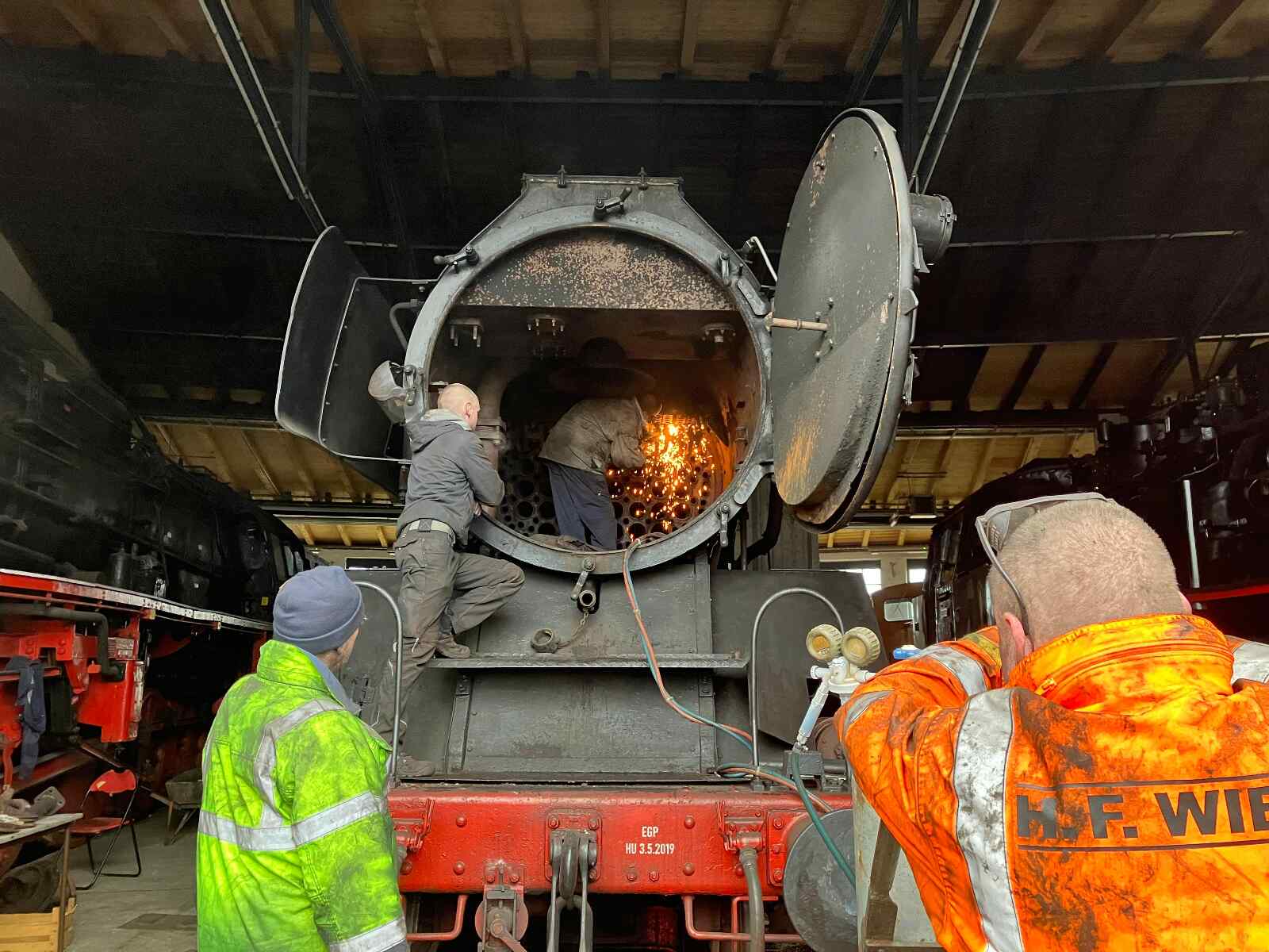 Nach längerer Abstellzeit durfte auch die Diesellok 118 748 mal wieder zeigen, dass sie noch nicht zu alten Eisen gehört. Der neue Eigentümer der Lok hatte zugestimmt und ein Eisenbahnsachverständiger zuvor den ordnungsgemäßen Zustand der Maschine attestiert. Also wurde sie für die Paraden in Betrieb gesetzt.