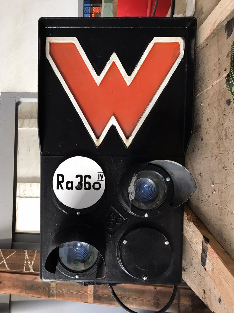Dieser Rangierbezirk bekommt demnächst weitere technische Ausrüstung: Das neue Rangiersignal ist nun technisch instandgesetzt und wartet auf den Einsatz. Wir stellen das Bild hier bewusst um 90 Grad gedreht dar, weil das Signal so wie gezeigt aufgestellt werden soll. Wir warten nun auf das Ende des Frostes, damit ein Fundament dafür hergestellt und das Anschlusskabel vom Stellwerk bis zu seinem Standort gelegt bzw. angeschlossen werden kann.