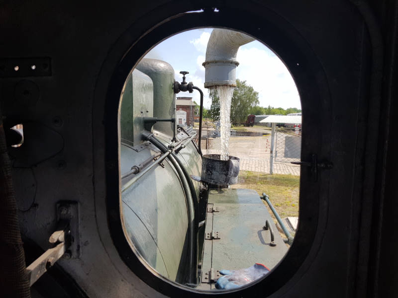 Am frühen Samstagmorgen wurden noch einmal die Vorräte ergänzt, wie hier der Wasservorrat unserer Dampflok Emma