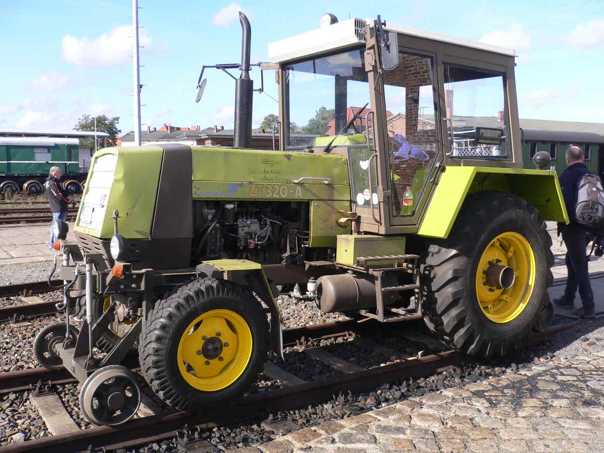 Dann wurden die Exponate des Blaulichtmuseums in Beuster auf der anderen Elbeseite aufgestellt. Die Kollegen waren mit einem IFA L60 in der Lackierung des Technischen Hilfswerks und einem Tankwagen der Feuerwehr auf unserem Gelände präsent. Außerdem wurde ein schienengängiger Traktor der Reihe Fortschritt ZT-320 aus dem Traktorenwerk Schönebeck aufgestellt