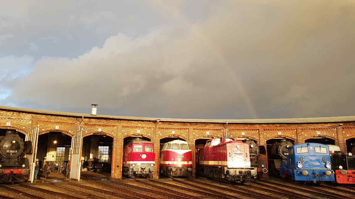 Am Abend war ein toller Regenbogen zu sehen, der genau auf den Lokschuppen zeigte.