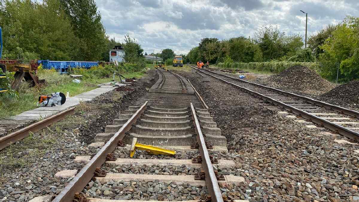 Kontinuierlich arbeiten wir an der Erhaltung unserer Gleisanlagen. Denn was nützt das schönste Museum, wenn man die Fahrzeuge darin nicht sicher bewegen kann. Diesmal wurden Arbeiten auf der sogenannten Magdeburger Bahnhofseite durchgeführt. Dabei wurden von einer Gleisbaufirma viele Schwellen aus Holz gegen solche aus Beton getauscht. Außerdem wurden Reste von Weichen ausgebaut, die nicht mehr benötigt werden.