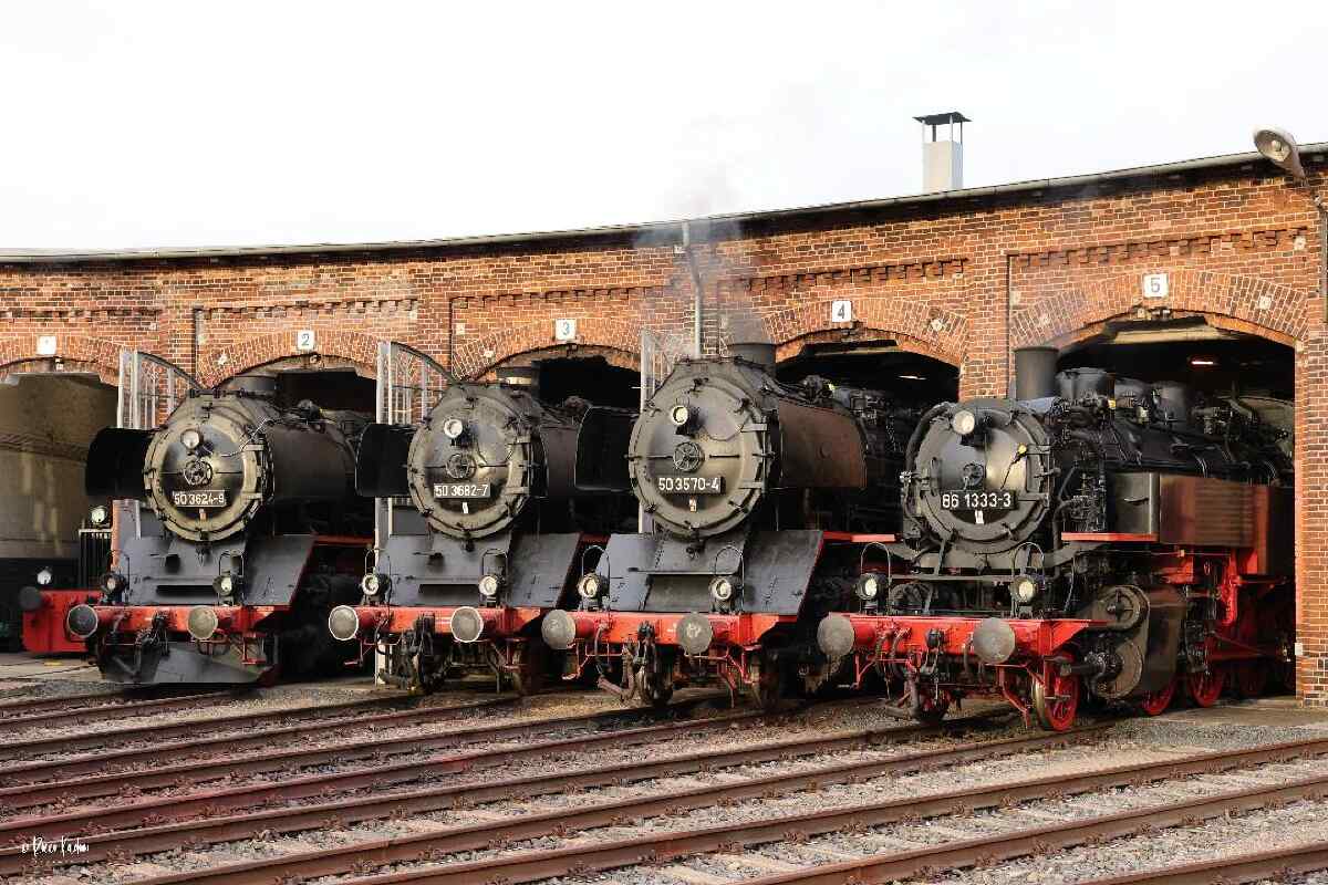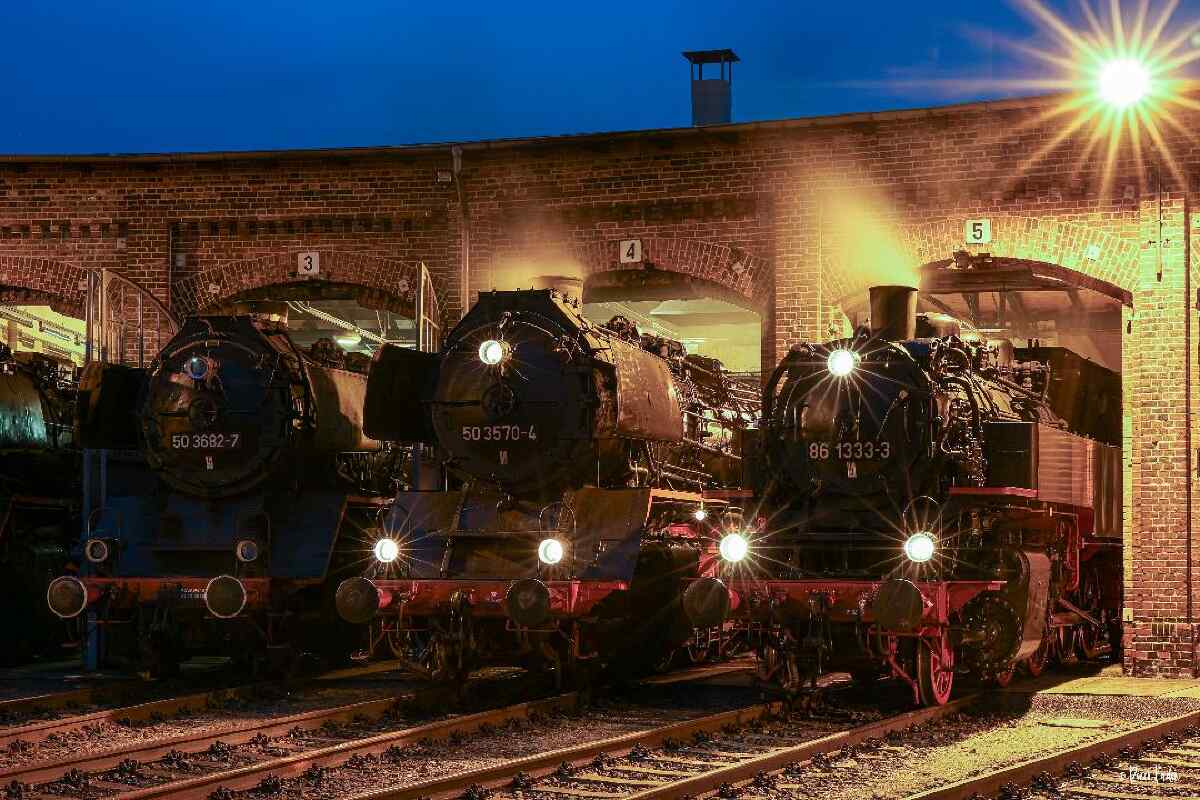 Und als ein wenig Ruhe einkehrte, ruhten sich unsere stählernen Hauptdarsteller im Lokschuppen aus: