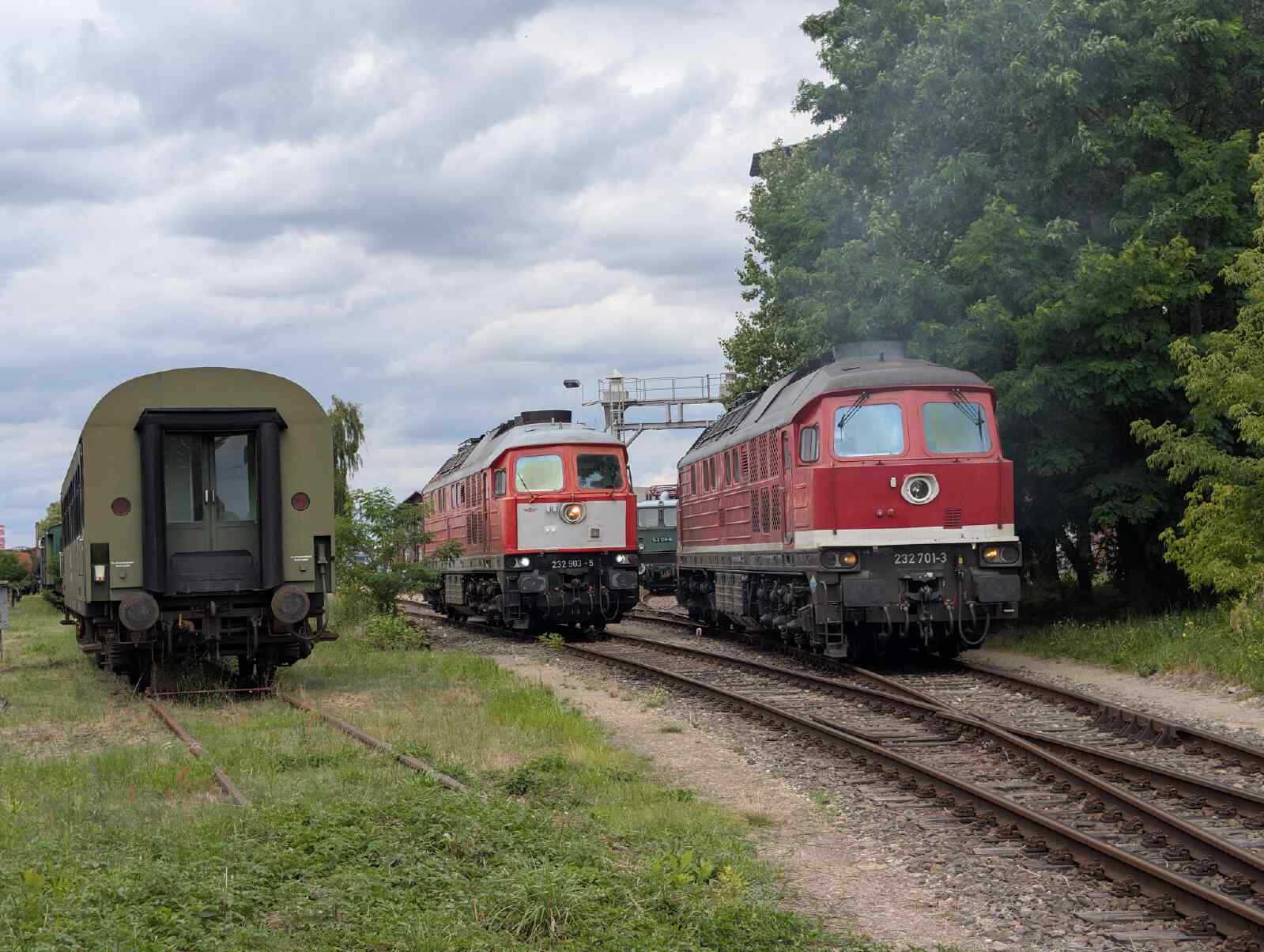 Mit großem Vergnügen schauen wir auf unsere Veranstaltung "Sommerdampf 2025" zurück. Zwar waren witterungsbedingt nur wenige Dampfwolken zu sehen, die von einer Dampflok ausgestoßen wurden. Dafür sorgte allein unsere kleine Emma. Allerdings war eine beträchtliche Anzahl von Dieselloks vor Ort und in Betrieb zu erleben, die ebenfalls eine Faszination ausstrahlen. Zu den Gästen gehörten die Großdieselloks sowjetischer Bauart 232 701 und 903.