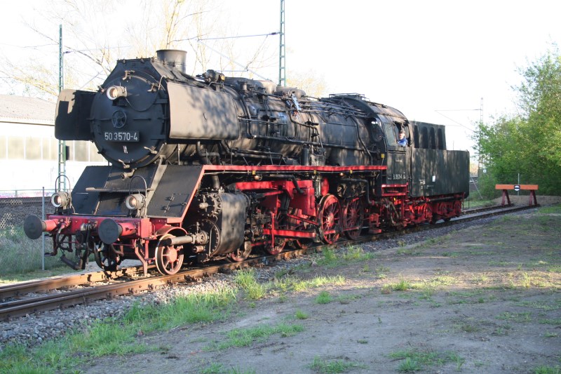 Nach erfolgreichem Abschluss des ersten Bauabschnitts steht die 50 3570-4 am Ende des neuen Gleisabschnittes.