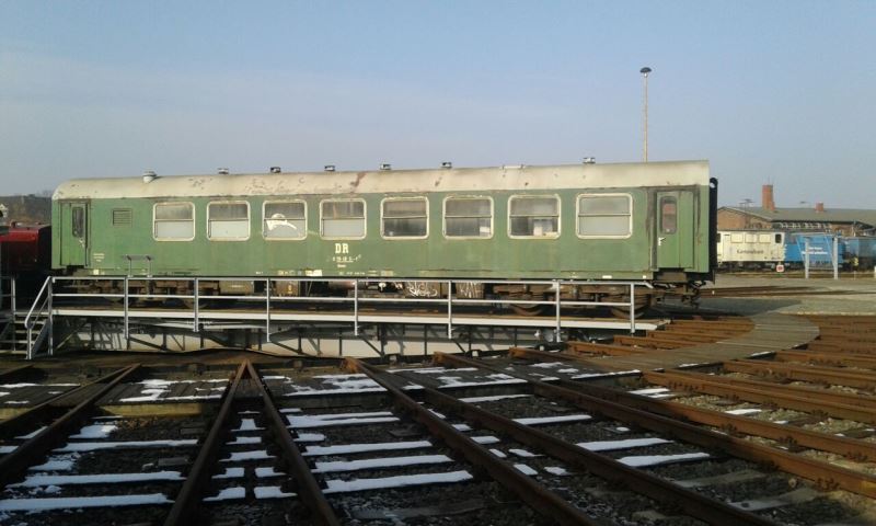 Anfang 2018 erwarben Mitglieder des Vereins einen Begleitwagen für den sogenannten Katastrophenzug, den wir bereits in unserem Bestand haben. Der Wagen mit der Nummer 67 50 99-48 164-9 wurde 1986 im Ausbesserungswerk Halberstadt aus einem Reisezugwagen der Gattung Bghw umgebaut. Er diente als Unterkunft für das Begleitpersonal der Deutschen Reichsbahn für den K-Zug, der wie an anderer Stelle schon berichtet, verletzte russische Soldaten gen Heimat beförderte. Der Wagen war dem Bahnbetriebswerk Seddin zuordnet. Er befand sich bis 1993 im Bestand der Deutschen Reichsbahn und wurde dann an die Magdeburger Eisenbahnfreunde e.V. verkauft, die ihn im Magdeburger Hafen abstellten.