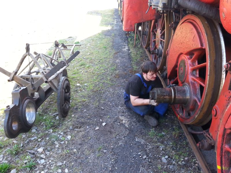 In den letzten Tagen hatten die Aktiven alle Hände voll zu tun. An verschiedenen Fahrzeugen gingen die Unterhaltungsarbeiten in die Endrunde, damit die Loks zu unserer kommenden Veranstaltung Anfang Mai betriebsfähig zur Verfügung stehen. Bei 50 3570 wurde die Kesselhauptuntersuchung abgeschlossen. Außerdem waren noch die Antriebsstangen zu montieren, welche die Kraft von den Dampfzylindern auf die Antriebsachsen übertragen