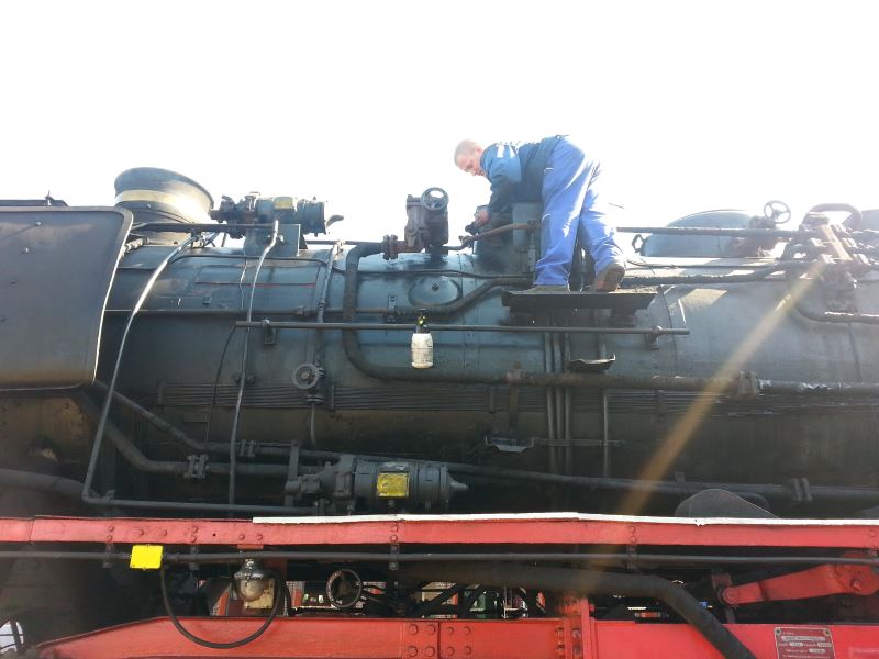 Dann beginnt das große Rangieren. Hier wird Emma aus dem Lokschuppen an ihren Anheizplatz geschleppt