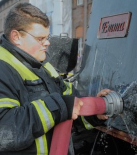 Ehrenamtlich im Einsatz: Kamerad Martin Beye sorgt beim Wasser für Nachschub.