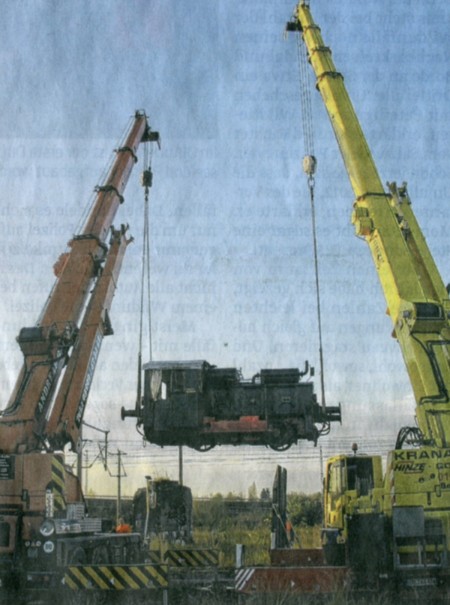 Zwei Kräne hievten die Loks in die Höhe. Bis zu 20 Tonnen bringen die Dampfrösser auf die Waage.