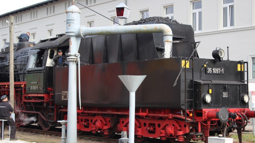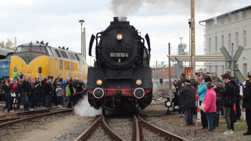 Zum Jubiläum haben sich die Dampflokfreunde einiges einfallen lassen. Schon vor Wochen wurde die 1912 erbaute Lok „Pritzwalk“ aus Meyenburg angeliefert, die an diesem Wochenende für Führerstandsfahrten zur Verfügung steht - ein Angebot, das sich viele Besucher nicht entgehen lassen wollen. Die Schlange am vorderen Bahngleis reißt nicht ab. Am Freitagabend ist eine Dampflok vom Typ „35 1097“ mit Original-Reichsbahnwaggons und einem „Mitropa“-Speisewagen aus dem sächsischen Glauchau eingetroffen. Hier können die Gäste DDR-Reichsbahnnostalgie pur erleben. Am Samstag geht es zunächst von Wismar bis Stettin, am Sonntag schließlich von Wismar nach Wittenberge. Den Nachmittag über gibt es Pendelfahrten über Perleberg nach Pritzwalk und zurück. Als der Zug am Sonntagvormittag auf dem Gleis 1 im Wittenberger Bahnhof ankommt, ist der Bahnsteig voll - trotz 20-minütiger Verspätung.