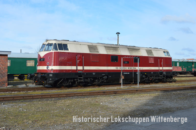 ![]() Lok 204 "VEB Chemische Werke Buna" (92 80 1228 501-3 D-WFL) übernachtet im Bw Wittenberge |