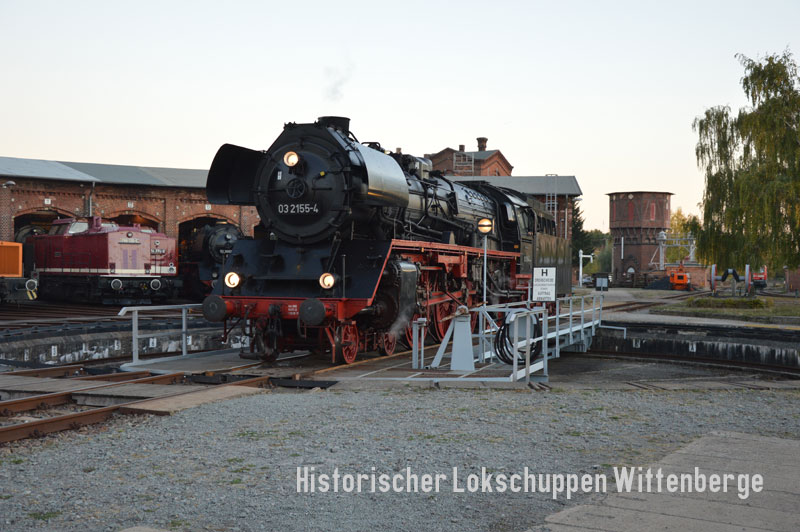 ![]() Am Abend des 13. Oktober 2018 nutzte die Schnellzugdampflok 03 2155-4 unsere Infrastruktur vor der Weiterfahrt nach Berlin. |