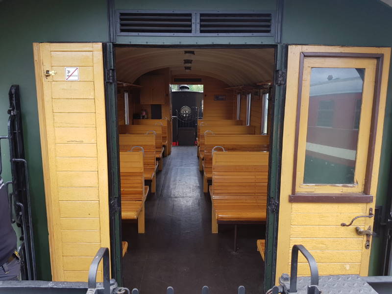Erstmalig in der Geschichte unseres Museums haben wir auch Rundfahrten auf dem Museumsgelände mit einem kurzen Museumszug angeboten. Die Idee war eigentlich aus der Not heraus entstanden, dass wir mit unseren kleinen Dampfloks aufgrund des Abstandsgebotes keine Führerstandsmitfahrten anbieten konnten. Also haben wir zwischen die beiden kleinen Loks einen historischen Personenwagen aus dem Jahr 1900 gekoppelt, in dem unsere Besucher das Fahrgefühl der Marke „Holzklasse“ erleben und von den Bühnen auch mal einen Blick in die Führerstände der Loks werden konnten. Der Wagen bot ausreichend Platz und gute Möglichkeiten der Durchlüftung.