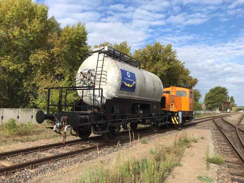 Einen kleinen Ausflug durfte unsere Diesellok 102 076 in den Hafen machen. Dort holte sie einen Güterwagen von der Firma IOI ab, den diese der Gefahrstoffeinheit des Landkreises Prignitz als Übungsobjekt zur Verfügung gestellt hatte. Der Wagen wurde im Hafen aufgestellt.