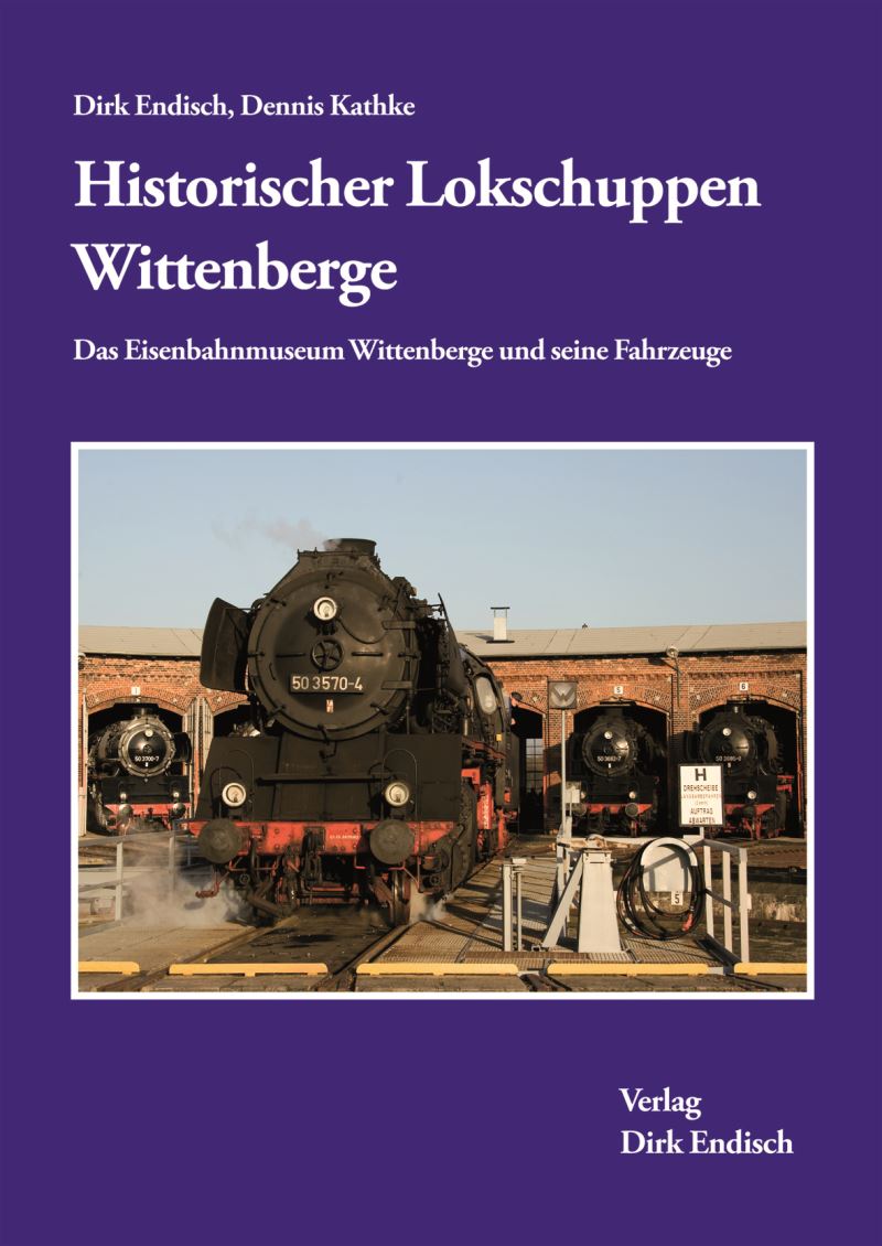 Weitere Informationen: Dirk Endisch, Dennis Kathke Historischer Lokschuppen Wittenberge Das Eisenbahnmuseum Wittenberge und seine Fahrzeuge 2. ergänzte und erweiterte Auflage 128 Seiten mit 31 Tabellen, 12 Zeichnungen und 100 Abbildungen; 170 x 240 mm; fadengeheftete Broschur; 15,00 EUR ISBN 978-3-936893-89-6