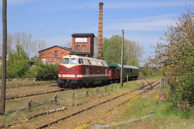 Die Diesellok 118 748 ist das jüngste Ausstellungsstück. "Seit dem 23. April ist sie offiziell in der Elbestadt zu Hause", sagt Vereinsmitglied Dirk Endisch und berichtet von der bewegten Geschichte des Schienenveterans. Der VEB Lokomotivbau "Karl Marx" Babelsberg lieferte die Diesellok 1968 an die Deutsche Reichsbahn. Nach ihrer Endabnahme gelangte sie zum Bahnbetriebswerk Erfurt. Nach einem kurzen Gastspiel im Bw Nordhausen stand die von den Eisenbahnfreunden aufgrund ihrer Gestaltung auch "Dicke Babelsbergerin" genannte Lok von 1971 bis 1973 in Diensten des Bw Schwerin. Anschließend kehrte die Lok nach Thüringen zurück. Zunächst setzte das Bw Nordhausen die Maschine ein, bevor sie zu den Bahnbetriebswerken Arnstadt und Meiningen gelangte. Diese bespannten mit ihr Personen- und Güterzüge bevorzugt auf Steilstrecken wie beispielsweise zwischen Suhl und Schleusingen.